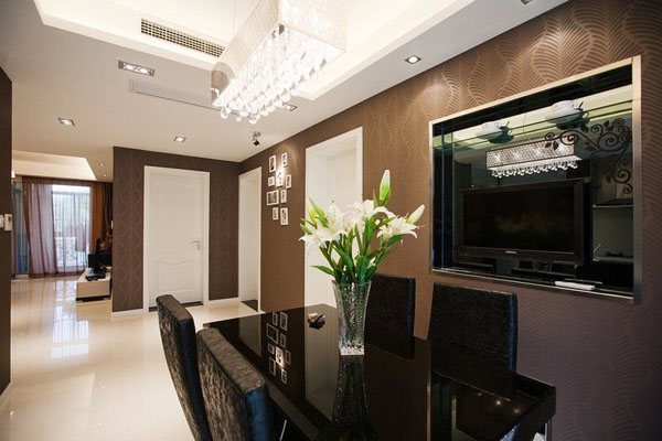 客厅与餐厅之间制作的是样式美观的镂空隔断,不影响空间采光亦能增加装饰度,何乐而不为呢。