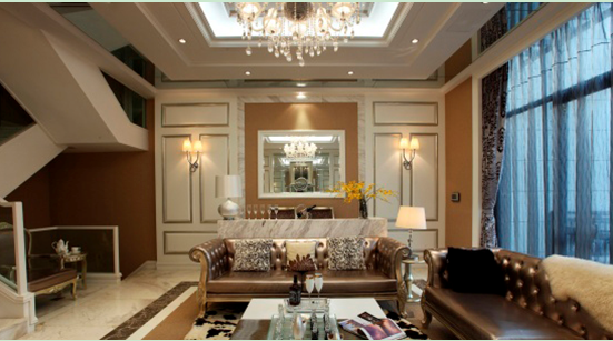 本案的所谓混搭简欧式风格我认为其实是指简欧元素+新古元素+时尚现代元素等综合体的展现,也成为今后的室内装饰的一个比较倾向性的趋势;本案客厅的家具就明显具有新古典的特征;而墙面的装饰具有简欧风格;