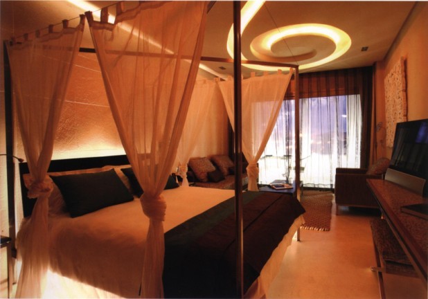 卧室里增加柔和情调,软装饰可以帮我们的忙。软装市场的强大千奇百纳的商品足以说明一切。帷幔也就是改良后的蚊帐是个很精致的选择。不同的色彩,不同的材质可以让空间绽放不一样的风采。