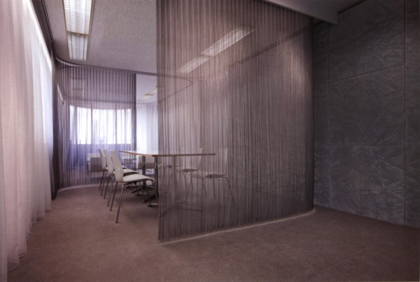 帷幔的浪漫并不只限于卧室居家环境里,还可以出现办公空间里。帷幔也可以单纯作为空间的隔断,与其他形的隔断相比,帷幔更加能够营造出一种柔和、舒适的空间氛围,尤其是采用半透明的纱质帷幔,更加能够渲染出空间的朦胧、妩媚的情调。