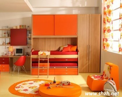 一、儿童房在家居的设计中,以暖色为主,给孩子安心的感觉,红色和黄色的相搭,制造绚烂光线,灯光的照射将空气也染成了可爱的橙色,而在儿童房的布置上,加上可爱的图案会让卧室更觉童趣十足,在柔和的灯光下,舒适的卧室会为童年留下深刻的美好印象。