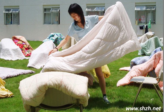 很多人只要看到外面有阳光,就习惯性的把被子拿出去晾晒。殊不知晾晒的次数太多,会使被子的棉纤维脱落,那它的保暖性就会减弱。而羽绒被和羊毛被,因为他们材质的特殊,含有油分,在经过暴晒后会产生化学变化,晒后会有异味。所以平日保养只需要将它们放在通风干燥的地方就可以了。