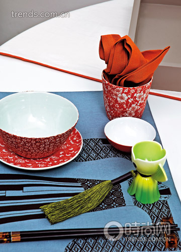 中国人讲究饮食文化,春节里的家宴更是马虎不得。让我们看这个场景:古雅的花窗下,一场盛宴正要开始。白色圆桌上,年年有“鱼”的桌旗上,盛满了一桌的喜气洋洋。花朵的杯盘碗碟,是欢喜的红色,散发着浓郁的中国气息。一笸箩的山楂,映衬着金红色的鲤鱼的图案,满目的是鲜亮与快乐。可爱的金鱼蛋杯,虽然是最传统的中国经典图案和意向,但现代时尚的设计让我们眼前一亮。这一场盛宴,从形到色,既赏心悦目,又勾起食欲无边。