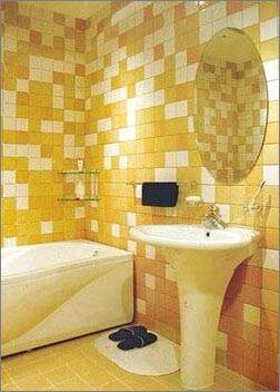 在卫生间中使用鲜亮的米白色、浅黄色、粉红色和肉色,可以使人感觉放松。