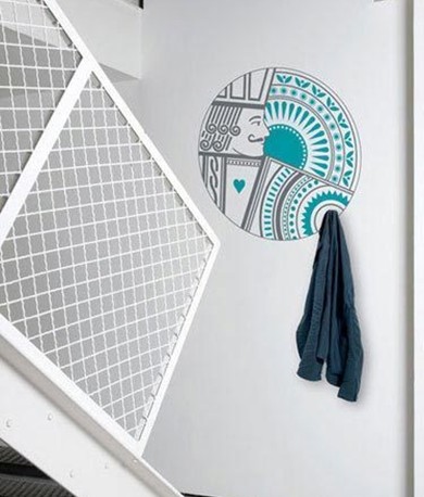 白色的墙面上装饰一个挂钩,如果不设计好很有可能破坏室内的美感,还会显得很突兀。如果我们在这么墙壁上手绘一幅小图案,就会达到不一样的效果呈现给大家,会让你的居室变得美丽又可爱。
