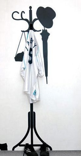 此款立体感很强的衣架手绘墙,会让很多人都产生错觉,只因为对应绘制的地方装饰了挂钩,这样就足以以假乱真了。