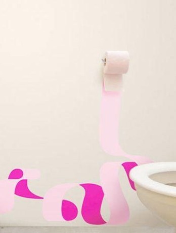卫浴间的墙面也艺术了一把,卷筒纸背景手绘了可爱的粉色图案,粉色液体手绘涂料散发出的花香,还可以净化室内空气。