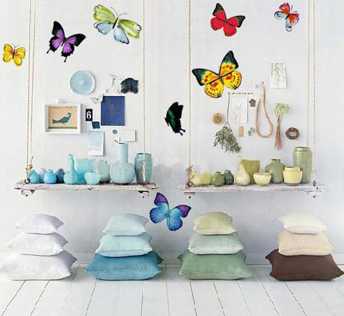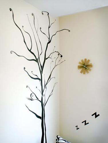 通过墙贴处理,将树木、花朵、蝴蝶等常见的自然界形象直观地表现出来。不但彰显出主人的生活情趣,让家赋予了新生命,也引领新的家居装饰潮流。