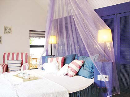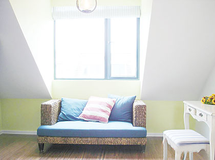 阁楼的房间以蓝白相配的地中海色彩为主。蓝白相配给人以一种干净、浪漫的感觉,很能彰显主人的品位。