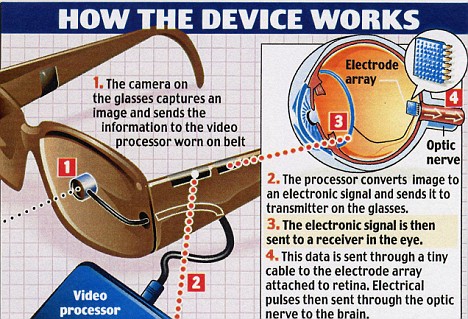 据医学专家称,这种高科技“仿生眼”将给成千上万名盲人带来重见光明的福音。50年之内,“仿生眼”科技的发展,应该可以确保像罗恩这样的盲人能够重新读书看报。 (台文)