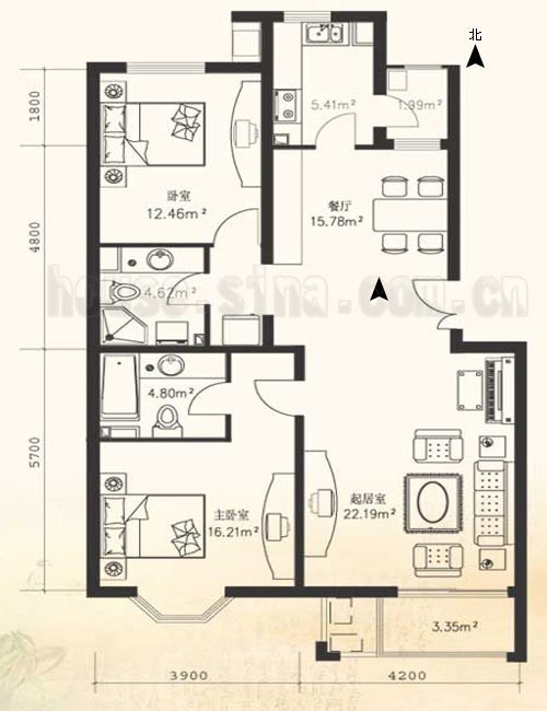2、入户门不直接面对客厅和卧室,私密性好。