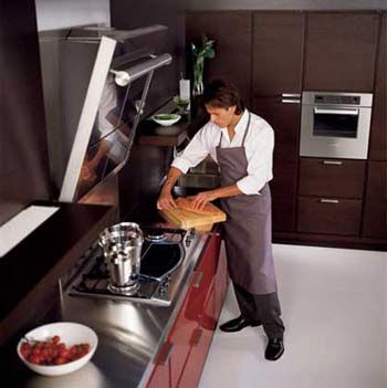 简约主义厨房的一大主要特点就是形式简洁,它的表现方式体现在厨房设计大多为简单的直线,横平竖直,减少不必要的装饰线条,用简单的直线强调空间的开阔感。由于直线型的设计较多,空间感很强,让人们在其中倍感舒适与清爽。说到简约厨房并不是说明要对厨房的实用功能让步,既然为简约风格,在厨房的设计中就会摒弃所有不必要的繁复支节,剩下最本质的功能,厨房里除了保留最基本的储藏、洗涤、烹饪等功能外,已很难找到其他不必要的东西,刀叉等实用工具也只是满足主妇的最基本需求,而不是多得让人分不清如何使用的各种工具。