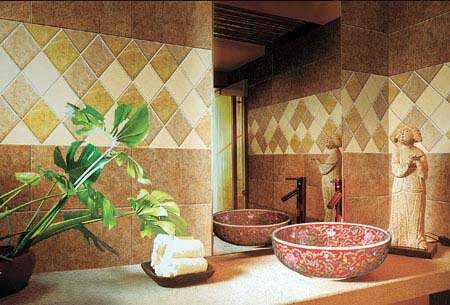 古典手盆搭配仿古瓷砖毋庸赘言,而尝试一下用描画精美的手绘家具来与之结合,灵动的图案和色彩与古陶的样式相得益彰,绝对给你带来惊喜。