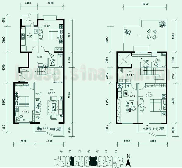 2、顶层拥有大面积露台,和顶层室内空间相结合,显出本户型的档次。顶层露台形成一个有别于室内的空间,并改变了整个顶层的空间氛围;