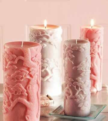 花朵,这个春天的使者还呈现在蜡烛上。除色彩和雕花的相得益彰外,还为房间营造了宁静祥和的温馨气氛。柔情脉脉的烛光,也拉近了彼此之间的距离。