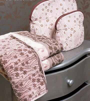 春天般纯美和恬静的粉底上描绘着暗红色小花的,是浪漫女主人的毛巾和手袋。清丽的小花让雅致的居室不乏柔和喜悦的轻松感。
