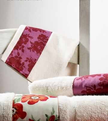 大花的底布铺设了浪漫的基调。镶嵌花朵的毛巾随意地斜搭和叠放,为自然气息的房间带来了怡人的田园风情。长绒毛的柔和触感染上了诗意的色彩。