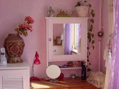 梳妆镜一般都放在卧室里,女主人睡前的卸妆一般也会在此完成。但习惯上镜子不能对床,梳妆镜一般都和床平行而放。至于桌面上的小镜子,则可以随便摆放在梳妆台上。