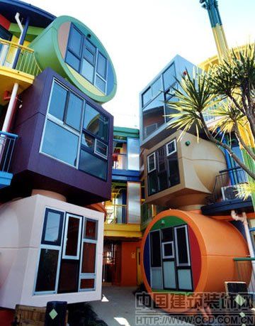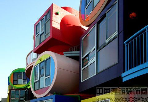 坐落在东京郊外三鹰市的一座老年公寓堪称世上最花哨的住宅,由日本艺术家荒川修作和他的妻子、诗人玛德琳·琴斯根据多种科学规律设计而成,其中包括神经学及实验现象。这座建筑外形奇特,色彩艳丽,建筑内部也是波澜起伏,色彩缤纷。设计者的座右铭是“建筑对抗死亡”。