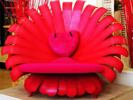 粉色太阳花瓣构成了沙发的整体,花蕊设计成桃芯靠垫,花蒂则成为整个沙发的支撑点。坐在这吐蕊的太阳花沙发上,仿佛回到那个花仙子陪伴的童年。