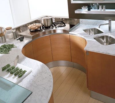 综上所述,厨房专家设计一个安装台面的一般长度不低于270--290厘米之间。如果由于房间的原因,安装台面不能靠一边的墙,则解决的办法是经过墙角。在操作台上方安装一定数量的电源插头,用于接通小电器的电源。