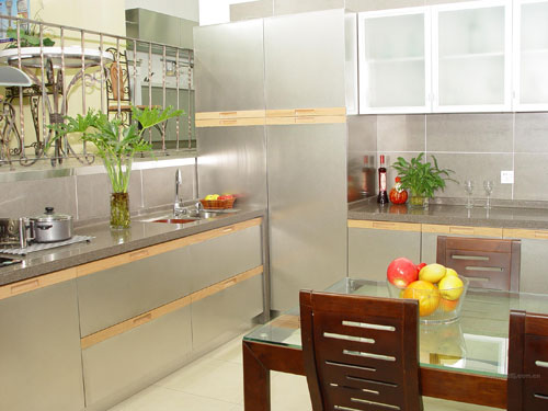 三是要看烤漆。专业大厂一般都采用高光烤漆的技术,识别这种烤漆的方法也很简单,可以将其样品拿到灯下,看灯在样品板上的投影是否清晰可见,即如果采用优质的烤漆,是可以作镜子使用的;另外,好的烤漆耐磨性强,易于清洗,你可以试着用圆珠笔笔筒的一端,在样品板上刻划,再用一张干净的纸擦拭划痕,看看能否去掉。