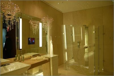 施华洛世奇卫浴是一个全新概念的水晶卫浴。卫浴的设计效果围绕高质量的施华洛世奇水晶展开。水晶能够提升生活氛围,折射梦幻般的光泽,令人感到温暖。施华洛世奇卫浴的主题是光彩夺目的白日梦幻:水晶与光线,水,花岗石,木材,大理石产生互动,创造出和谐与充满神奇光线折射的私密空间。