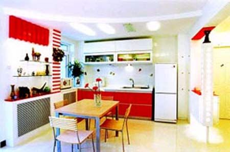 简约主义厨房的一大主要特点就是形式简洁,它的表现方式体现在厨房设计大多为简单的直线,横平竖直,减少不必要的装饰线条,用简单的直线强调空间的开阔感。由于直线型的设计较多,空间感很强,让人们在其中倍感舒适与清爽。说到简约厨房并不是说明要对厨房的实用功能让步,既然为简约风格,在厨房的设计中就会摒弃所有不必要的繁复支节,剩下最本质的功能,厨房里除了保留最基本的储藏、洗涤、烹饪等功能外,已很难找到其他不必要的东西,刀叉等实用工具也只是满足主妇的最基本需求,而不是多得让人分不清如何使用的各种工具。
