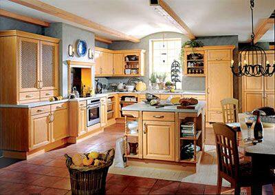 乡村式家装一般使用木质家具——有的经过油漆处理,有的是褪色家具,还有的是经过打蜡处理的家具。一些家具适合色彩鲜亮的油漆,但是也有很多家具需要溶入一定的个性和年代感。为了做到这一点,可以用砂纸或钢丝绒对家具表面的油漆进行打磨,使其隐约露出油漆层下的木质表面,同时,还要让家具的拐角显示处磨损的痕迹。需要注意的是,为了防止操作面在使用过程中受到磨损,操作面的木头表面要上蜡或加装贴纸,并且,切剁食物食物时一定要用案板。案板不但能对操作面起到保护作用,而且还易于清洗。