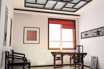 一般使用彩绘玻璃进行天花装饰,同时内部可以安放灯源,增加美观效果。多用于局部吊顶,要求追求一定的艺术效果。