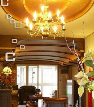 第六,灯光的布置与顶棚的高度、房间的大小、环境和造形、风格,家具的布置、地面、墙面色彩、材质相吻合,起到画龙点睛的妙用,家庭居室的照度,一般在50~150勒克斯之间。这样既能提高照明的质量,又能达到装饰的效果。