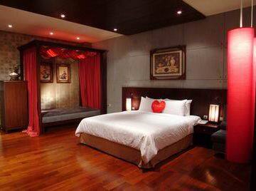 植绒面料的窗帘较为厚重,吸音、遮光效果好;选用红、黑配合的窗帘,有助于尽快入眠。
