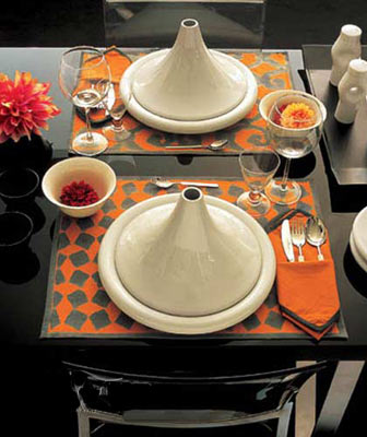 节日里,当然要把黑色的单调感降到最底!波普艺术的“小火山”造型的白色套盘摆在黑色桌面上非常显眼。节日餐桌的布置不仅如此,还需要增添一些温暖的元素,铺上橙灰相间、图案有别、带民族感的餐垫,既能与波普风格套盘很好的搭配在一起,又能带来非常丰富的视觉效果。为了让这种“暖”和“谐调”完美到底,餐巾一定要与餐垫保持同一色系,还可以适当地在小茶杯和小花瓶里放上花朵,为风格跳跃的餐桌增添柔和的点缀。
