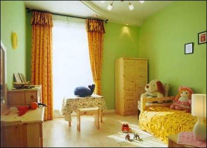 儿童的抵抗能力较低,房间装修应尽量选用环保材料。最好不要购买三聚氰胺板、万能胶做的家具;不用低档墙纸、墙纸胶和低档复合地板;少用普通夹板;尽量用天然实木和环保白胶做家具及造型,铺设实木地板时不要用沥青打底。在儿童房装修和装饰材料中,涂料和油漆的隐患最大,其含有的甲醛和苯是导致儿童患白血病和癌症的重要原因,所以家长一定要谨慎选择知名品牌。