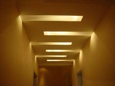 悬吊式是将各种板材、金属、玻璃等悬挂在结构层上的一种吊顶形式。这种天花富于变化动感,给人一种耳目一新的美感,常用于宾馆、音乐厅、展馆、影视厅等吊顶装饰。常通过各种灯光照射产生出别致的造型,充溢出光影的艺术趣味。
