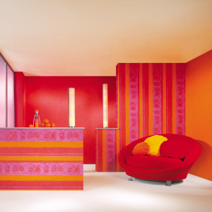 长条状的花纹壁纸具有恒久性、古典性、现代性与传统性等各种特性,是最成功的选择之一。长条状壁纸可以把颜色用最有效的方式散布在整个墙面上,而且简单高雅,非常容易与其它图案相互搭配。这一类图纹的设计很多,长宽大小兼有,因此你必须选适合自己房间尺寸的图案。由于长条状的花纹设计有将视线向上引导的效果,因此会对房间的高度产生错觉,非常适合用在较矮的房间。