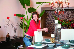 高榕说 虽然我很少自己在家做饭、吃饭,不过还是喜欢有一个艺术化的用餐环境。如果在过年爸爸妈妈和朋友们来,欧式的长餐台、枝形烛台、水晶吊灯都是特别提高热闹气氛的东西。