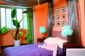 高榕说 卧室的床品显得有些单调。辛苦一天的人都想立刻扑在床上睡个好觉,而床就应该让人有一看到就想扑上去的欲望。如果给它加上两个长枕头,四到六个大靠包,纱幔外加一顶天鹅绒的厚帐幔,颜色变得暖暖的,有一种暧昧的慵懒气息在里面,好像欧洲城堡里的床,一定会让女孩子做个美美的梦。