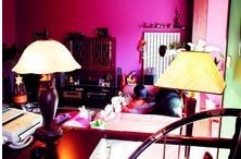 走进DANIEL的家,你的第一感觉会是暗。沙发、家具等都隐匿在深红暗绿之中,就像刚走入黑暗,眼睛还不适应似的。几十秒后,屋里的一切才开始豁然开朗。DANIEL说,这是冬日上午十点的阳光还未能完全覆盖这个宽阔的客厅兼书房(错层的厅被主人设计成一个开放式的书房)的缘故,所以房间给人的感觉比较沉静,但随着太阳的不断移动,这个房间将会呈现不同的光影效果。真的会这样吗?