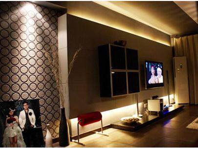 光源在立体空间里塑造耐人寻味的层次感,适当地增加一些辅助光源,尤其是日光灯类的光源,映射在天花板和墙上,能收到奇效,另外,还可用射灯打在浅色画上,都可起到较好的效果。