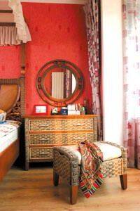 红色是中国新房的传统色彩,但如今很多的新新人类总是觉得新房中大量使用红色会有俗气的感觉,其实花点心思,在设计中并没有不变的俗和雅,要害在于色彩的具体把握。