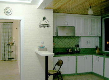 厨房虽小,但要储放的物品绝对不少,不过整体橱柜的出现,就为开放式厨房提供了便利,地柜、吊柜、五金件,不同的搭配可以变换出不同风格和类型的橱柜。而橱柜公司又会根据实地尺寸的大小和主人的需要,设计出最适合业主的橱柜,所以,储物空间也不需要担心。