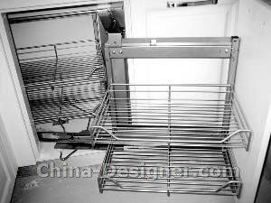 水盆、龙头、拉篮也是橱柜的重头戏。在安装吊柜和台面时,为了避免木屑落入拉篮轨道,应用遮盖物覆盖拉篮,以免影响日后使用。水盆安装则涉及下水问题。安装橱柜时,下水安装都会采用现场开孔的方式,用专业的打孔器按照管道的大小进行打孔,打孔的直径应比管道至少大3至4毫米,并且打孔后要将开孔部分用密封条密封,防止木材边缘渗水膨胀变形,影响橱柜使用寿命。