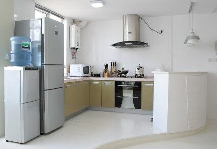所以经过二次装修改造过的厨房,更应该注重空间的重新规划,以满足新的功能需求。有很多问题需要在重新装修前考虑清楚,例如厨房与整体居室的风格搭配;是否需要重新改造空间,打通墙壁或门来增大厨房空间,还是要将其和起居室、餐厅连为一体;开门的方向、暖气的位置、窗台的形状、水和电的位置等等是否需要改变?还有什么东西需要一起放在厨房里?厨房被用来做饭的同时也在这里就餐吗?有多少人同时在厨房里工作等等。