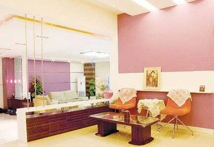 再说错层上面,如果全用白墙或是全用紫墙都会显得很死板,所以只在一侧小休闲区后贴上紫色壁纸,但要适当留白,才不会显得呆板。其他隔断部分的主色彩则都是紫色的。