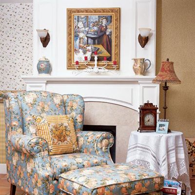 台阶分隔开玄关与客厅,踏上去就进入到客厅接待和休闲区域。区别于整个家庭的明亮色调,这里是惟一一处采用了深棕色为主调的地方。原因很简单——这套皮质沙发坐上去实在是太舒适了,而且女主人也不想将这个待客区布置得过于女性化。不过,为了协调整体风格,细心的女主人通过一些蕾丝沙发铺盖和花朵布艺靠垫柔化了沙发的硬朗感觉。