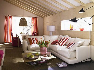 在房梁上加上一段弧形吊顶,能很好地缓解视觉上的压迫感。为天窗加上质好耐看的窗帘既能美化卧室意境,又能起到防风遮光的效果。