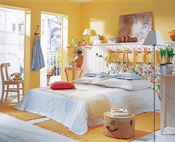 设计风格主要趋于平静、柔和。可搭配出一些灰兰或淡兰的组合,会产生令人平和、恬静的效果。亦可采用淡紫色与浅绿色的搭配,产生一番令人奇幻的神韵,展现迷人的气度。素净、清雅的落地窗帘加上同种花色的被套、枕头,让人倍感亲切。淡淡的暧色调,再辅以轻柔的棉纱织物,营造出一个温馨的世界。