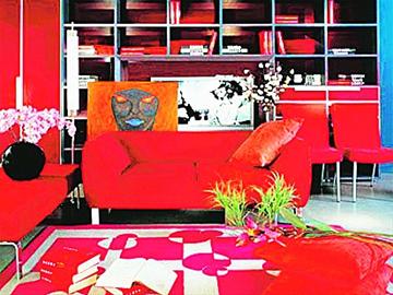 如何运用红色并富有层次地装饰客厅: