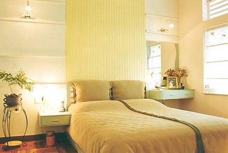 香槟色是柔软和舒适的色彩,月季花图案采用明线压花和暗线压花两种加工手法,让花朵的图案呈现精妙的变化,搭配明黄色墙壁和白色木质床,描绘出舒适富裕的居室表情。